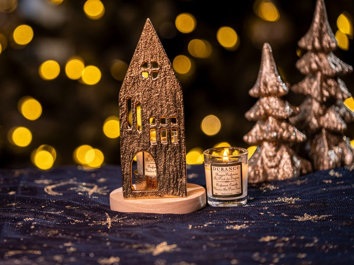 Un joli photophore doré et une mini bougie sapin 30 gr